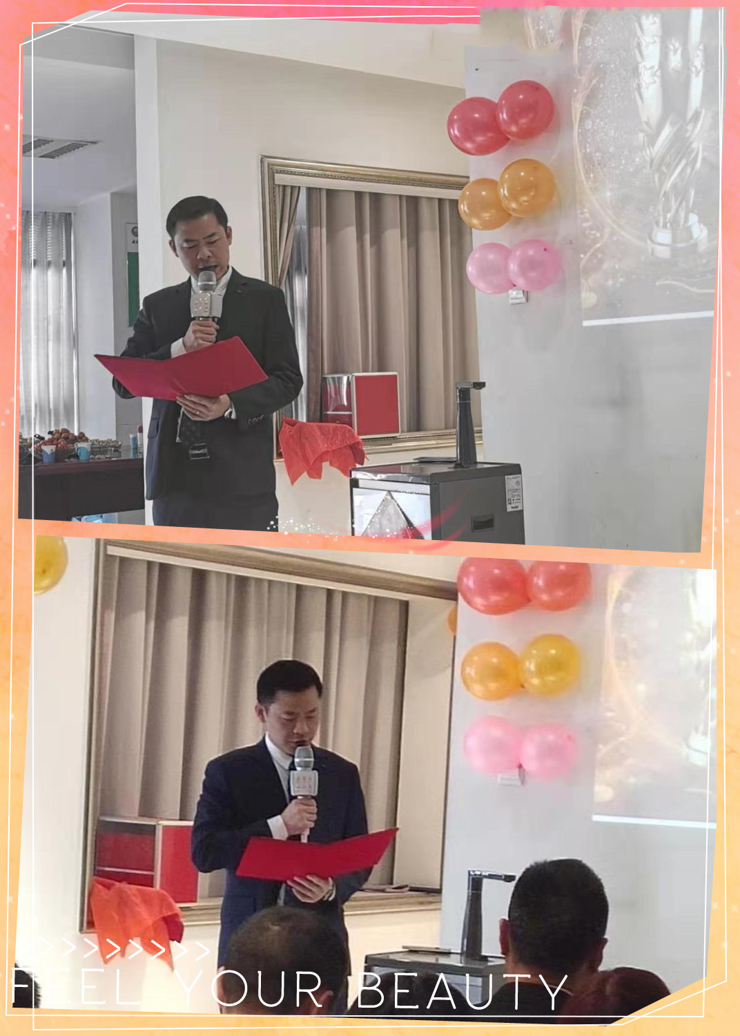 表彰大會(huì)于上午9點(diǎn)半在一家人銷售經(jīng)理龔倉云同志的主持下準(zhǔn)時(shí)開始。此時(shí),一縷陽光已從窗上悄悄地照進(jìn),辦公室的一切立即顯得溫暖起來,會(huì)議初始的抽獎(jiǎng)活動(dòng)更是為這種溫暖又增添了一抹欣喜。